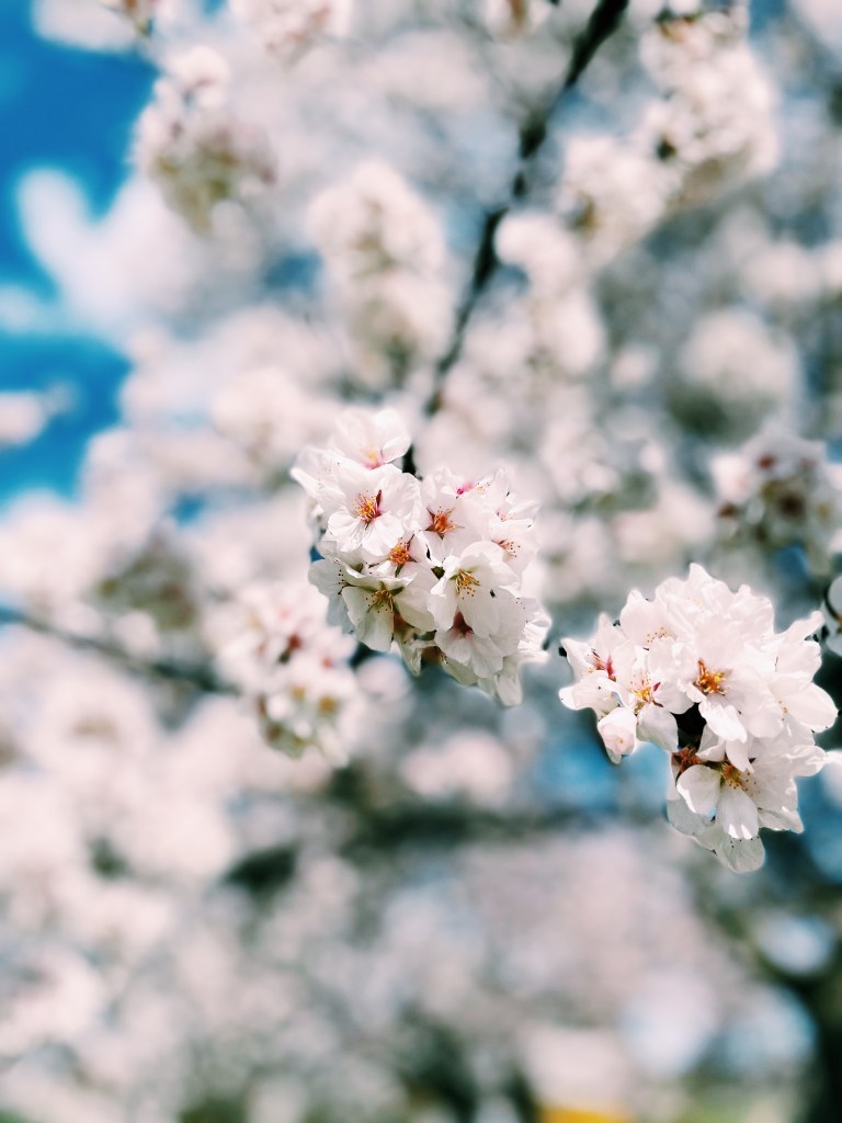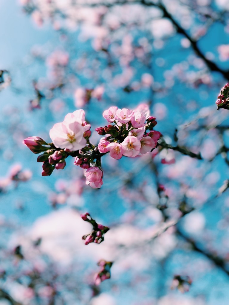Here’s to hoping that I too will bloom according to God’s perfect timing, like the cherry blossoms – like a soft, slow walk through the trees, inspecting every petal, every bud, every blossom playing tricks of light right before my very eyes. Standing firm but gentle at their peak bloom. Basking in the glory of waiting for that season. Enjoying the fleeting beauty of spring. The light at the end of the tunnel. The rainbow after the rain. And knowing that in another twelve months God will bring new life once again.